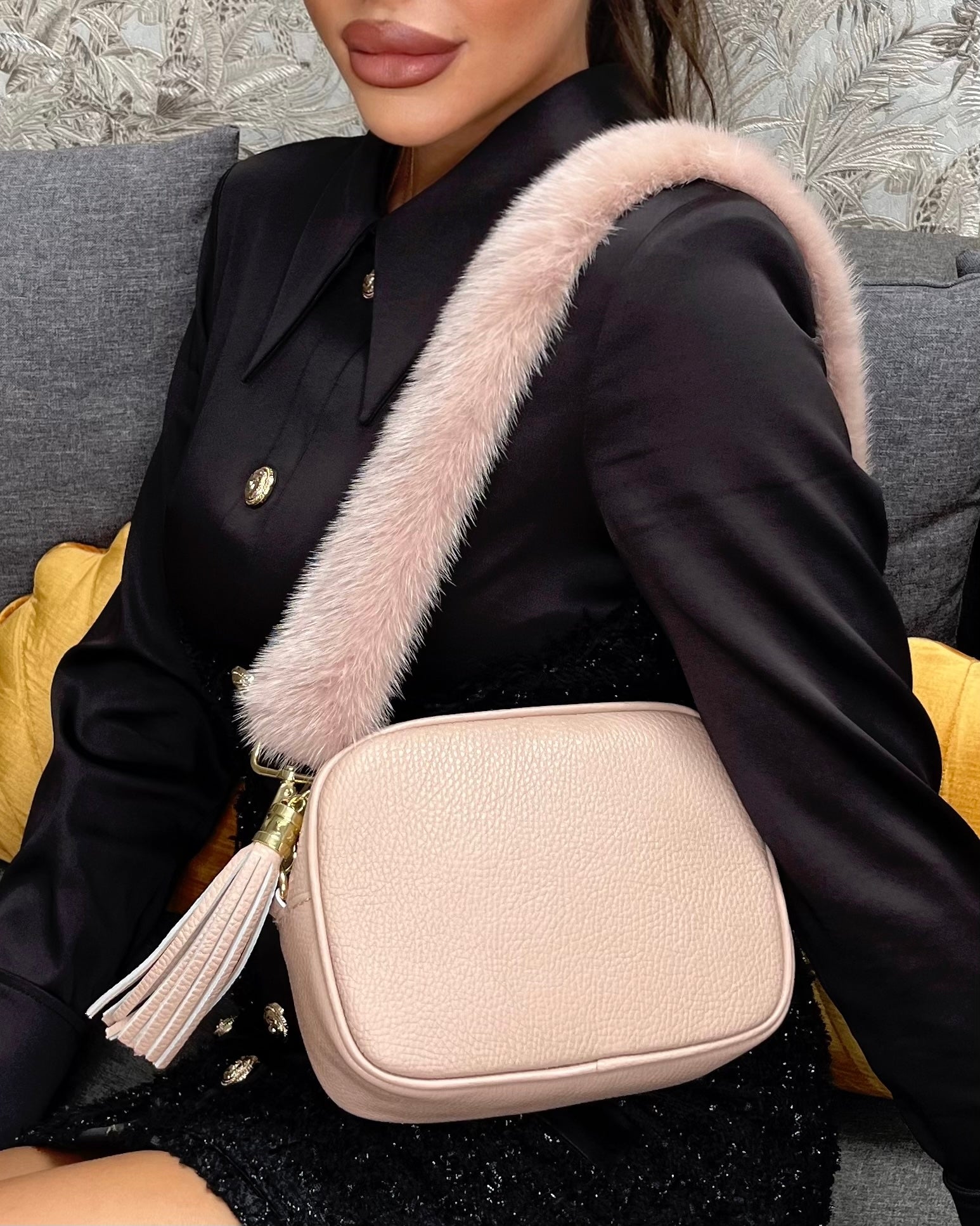 La moda di questa stagione parla di dettagli unici e ricercati. La nostra tracolla in visone, declinata in tante tonalità irresistibili, è l'accessorio perfetto per esprimere la tua personalità con stile. Un piccolo lusso che trasforma ogni tua borsa in un accessorio unico ed esclusivo nel suo genere, perfetta da abbinare a qualsiasi borsa desideri.
