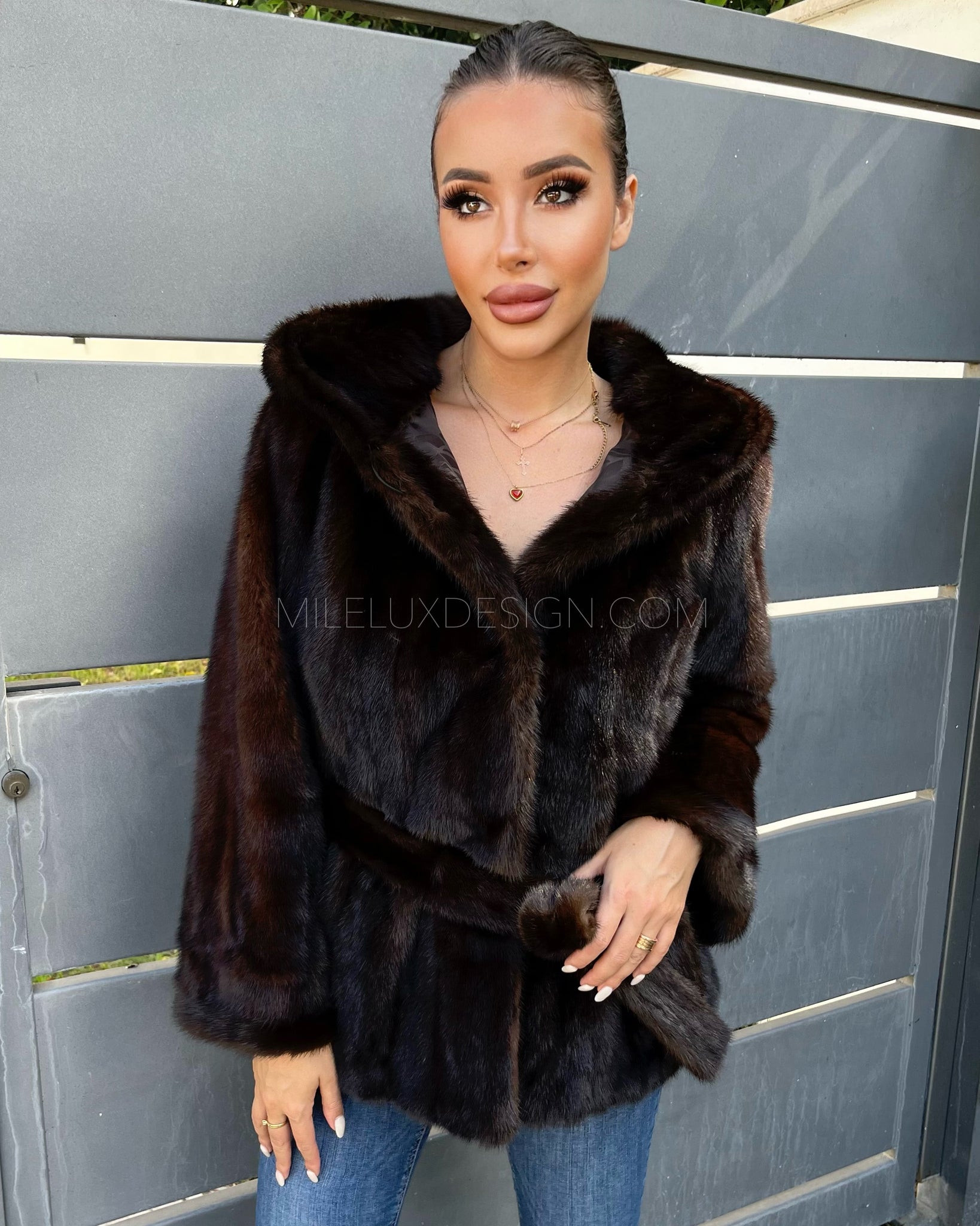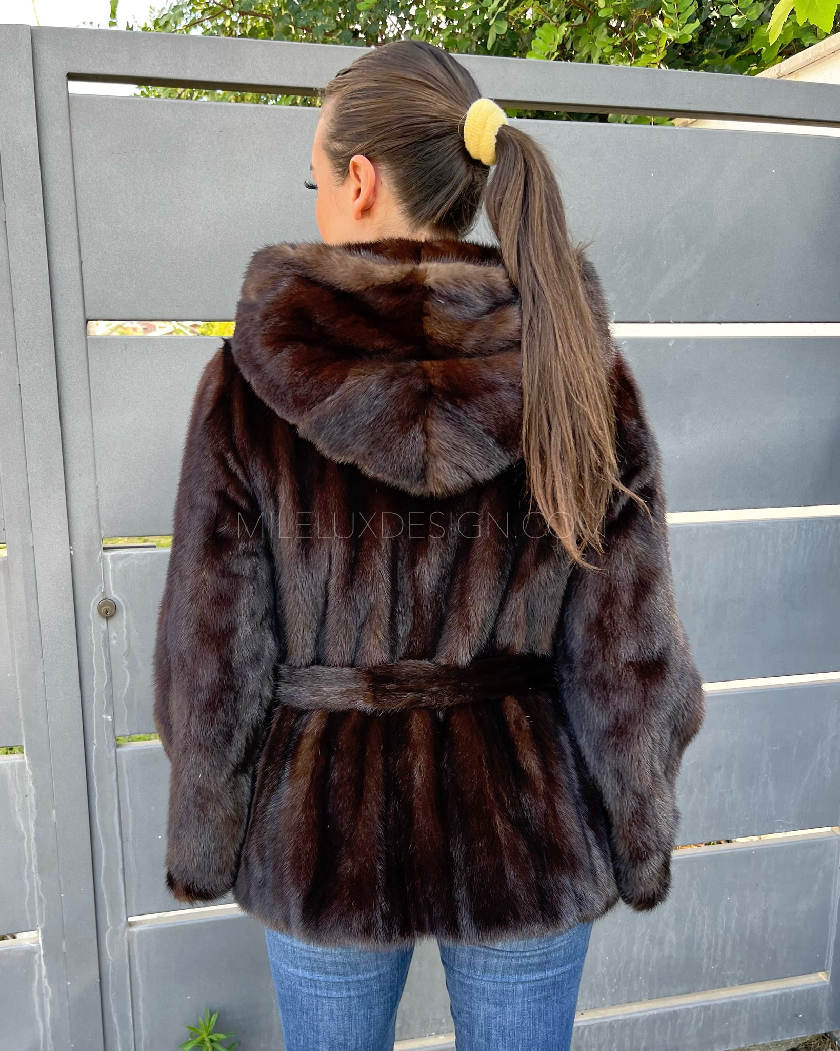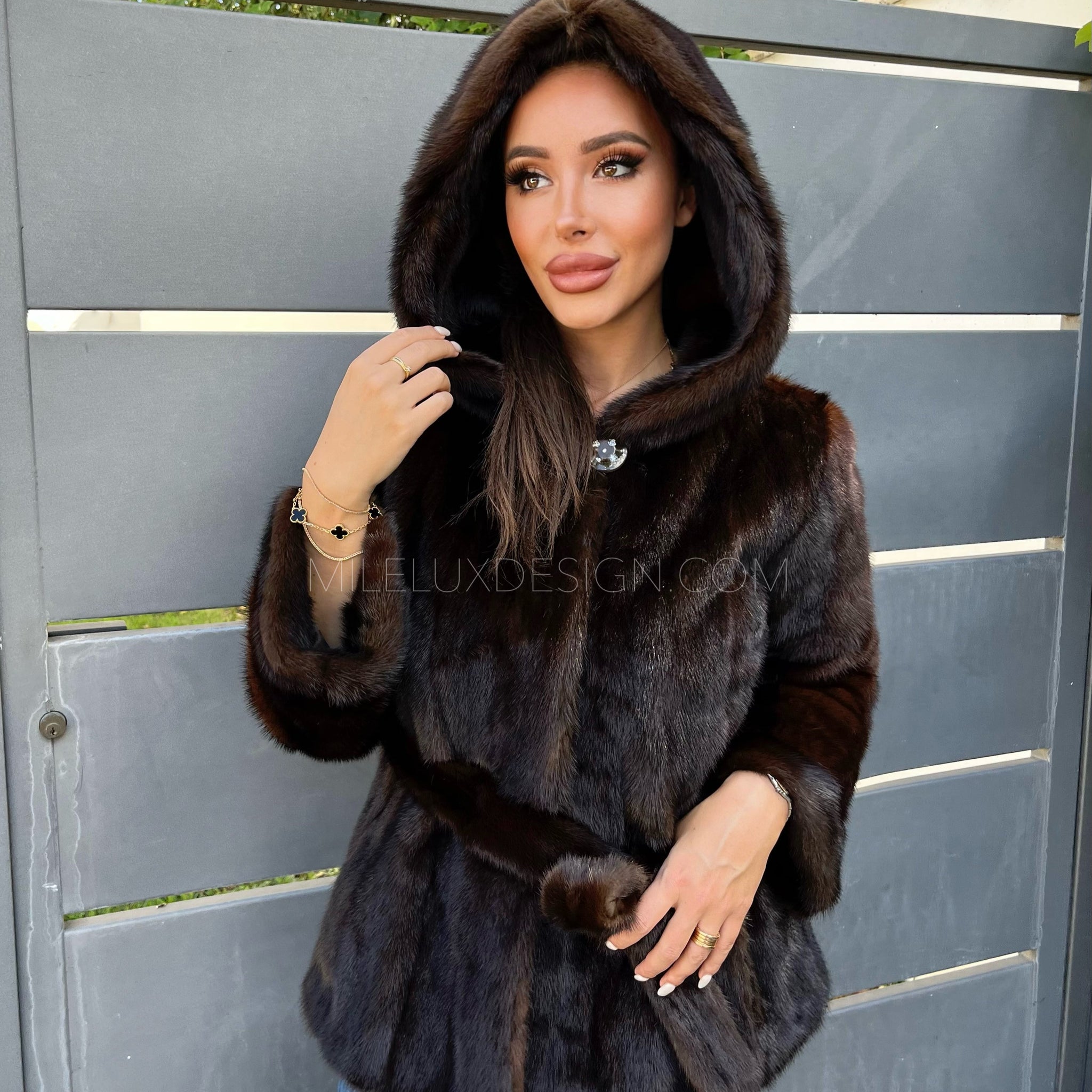 • Cappuccio foderato nella stessa pelliccia tono su tono