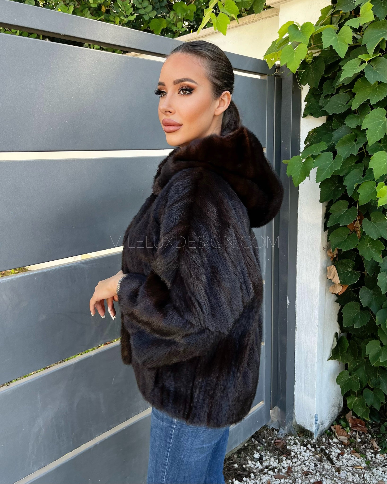 • Cappuccio foderato nella stessa pelliccia tono su tono